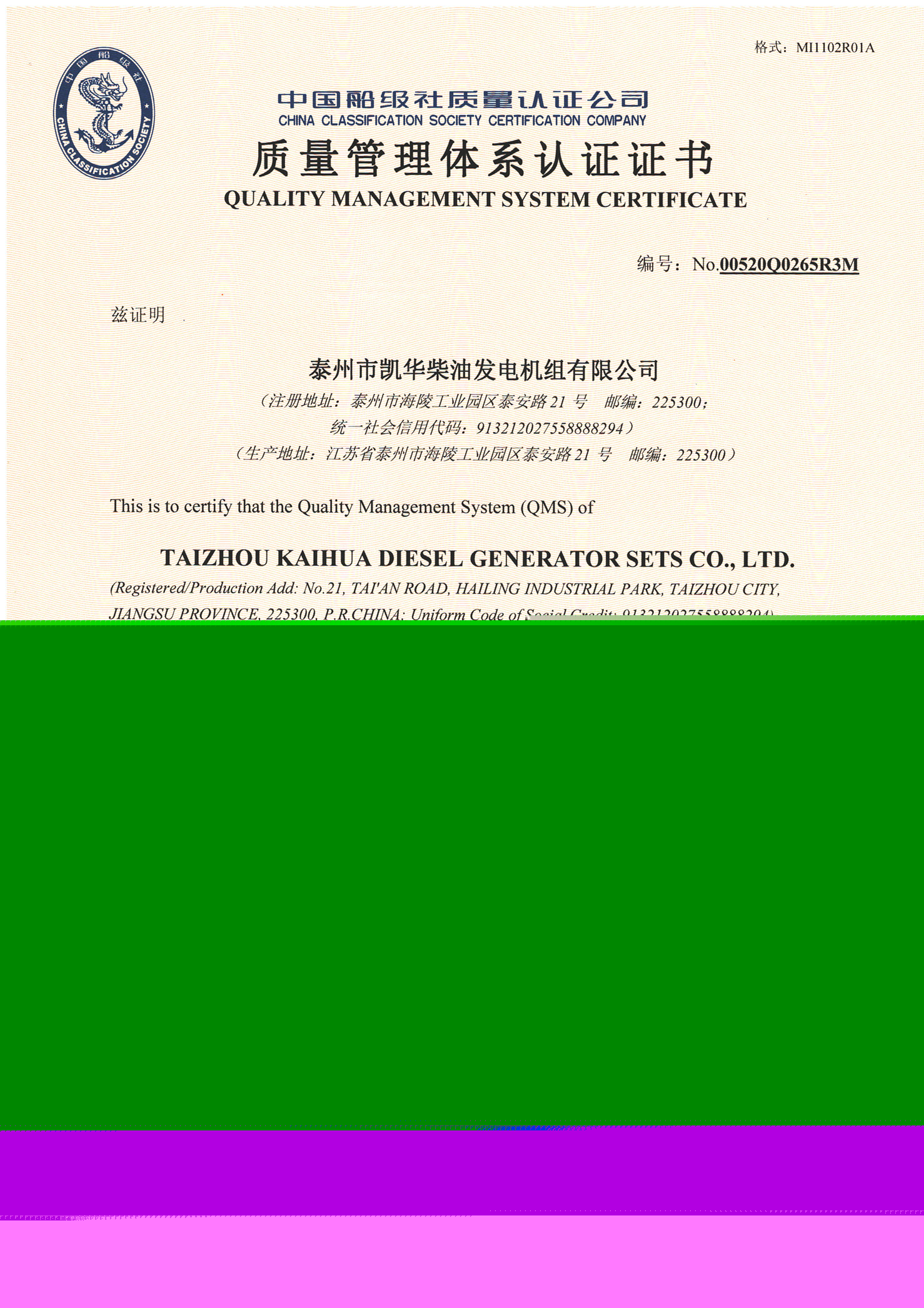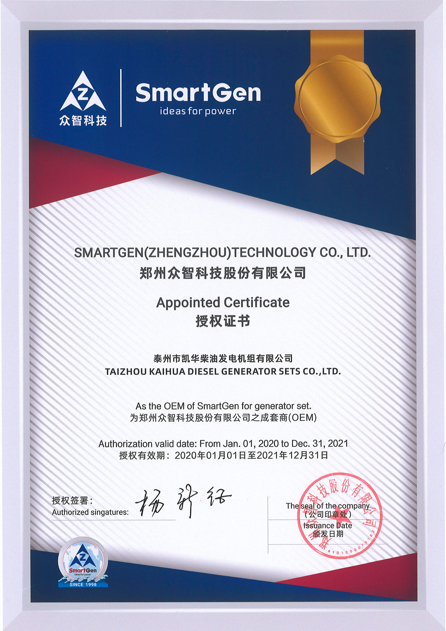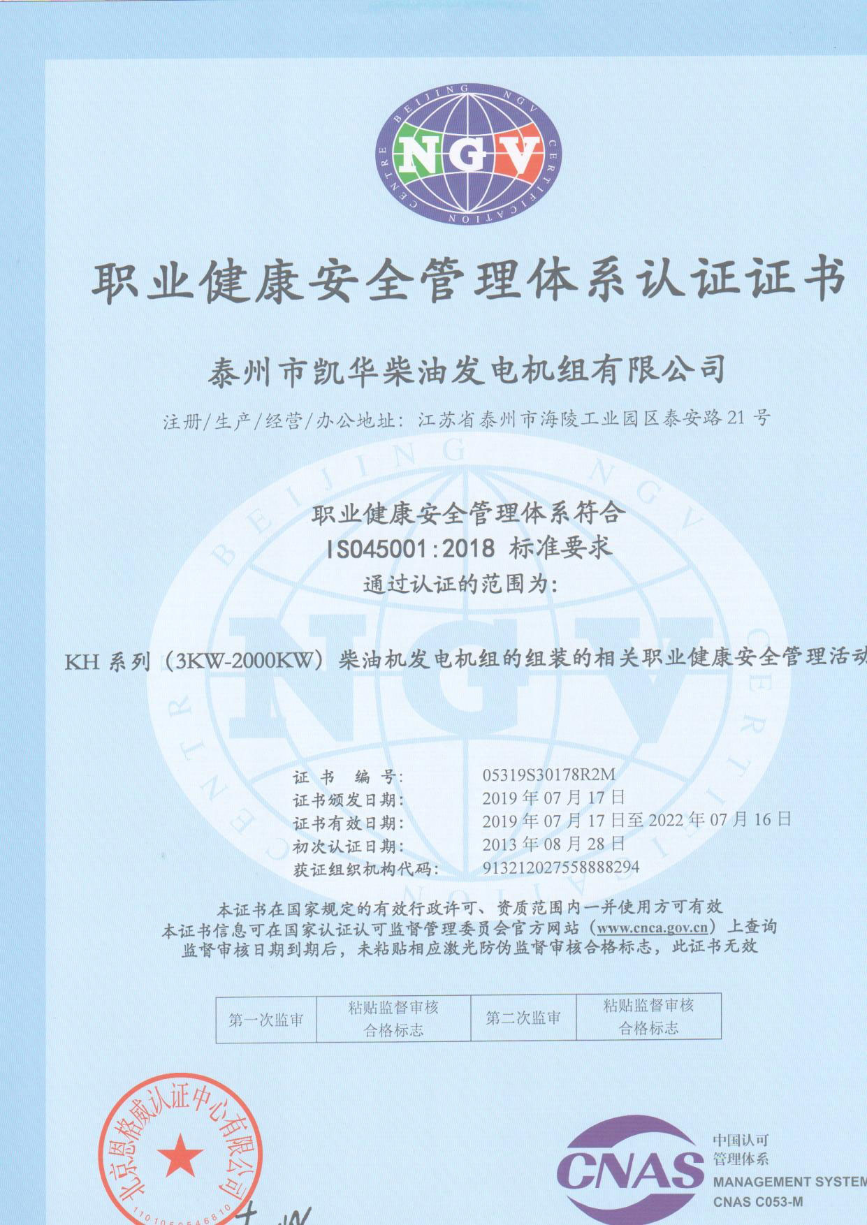 發(fā)電機組廠家凱華公司已先后通過ISO9001質(zhì)量認證、泰爾認證、ISO14001-2001環(huán)境管理體系認證、GB/T28001-2001職業(yè)健康安全管理體系認證,歐盟CE認證、SGS認證等。